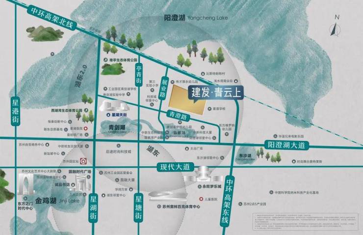 活力封面的青剑湖、生态休闲的阳澄湖、都会生活的翡翠湖交织湖区的日常,约1km直抵阳澄湖湖滨生态体育公园、约500m直抵翡翠湖生态公园、唯亭公园、仙樱湖公园、莲池湖公园,以生态宜居为特色给园区一个置业新主场。