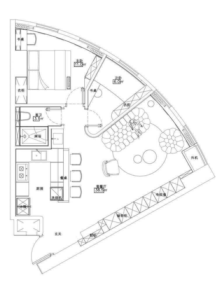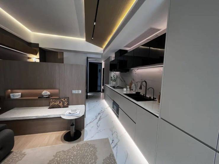 交付标准:精装全配(含自动衣架、嵌入式冰箱、洗衣机等)