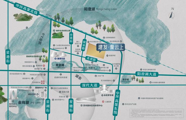 建发青云上位于苏州工业园区青剑湖板块核心,紧邻星澄学校(步行约3分钟),由建发房产与苏州兆润投资联合开发,总户数仅323户,打造11栋6-10层纯洋房社区,容积率低至1.5,绿化率高达35%,是苏州难得的“小而美”改善型住区。
