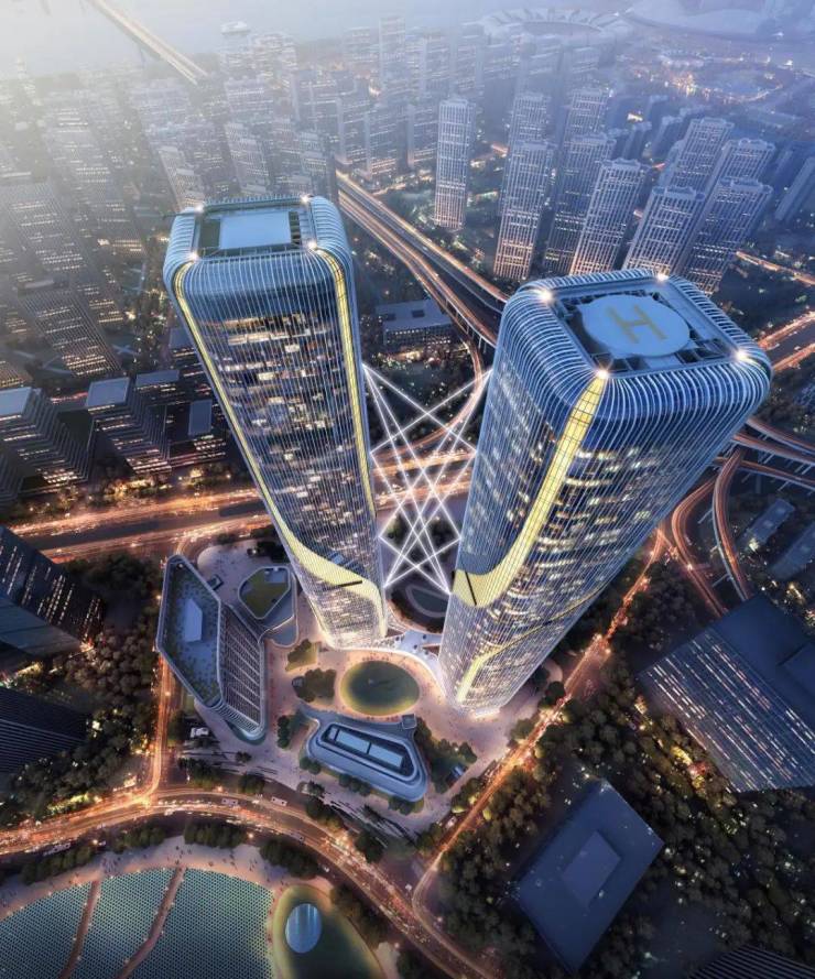 地标属性:作为亚运会官方城市形象展示点,双塔顶部的“云顶之门”已成滨江封面