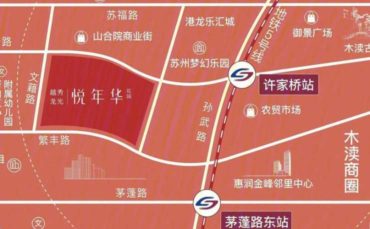 商业:木渎悠方、天虹商场、胥福商业广场等,社区自带约8万方TOD商业规划