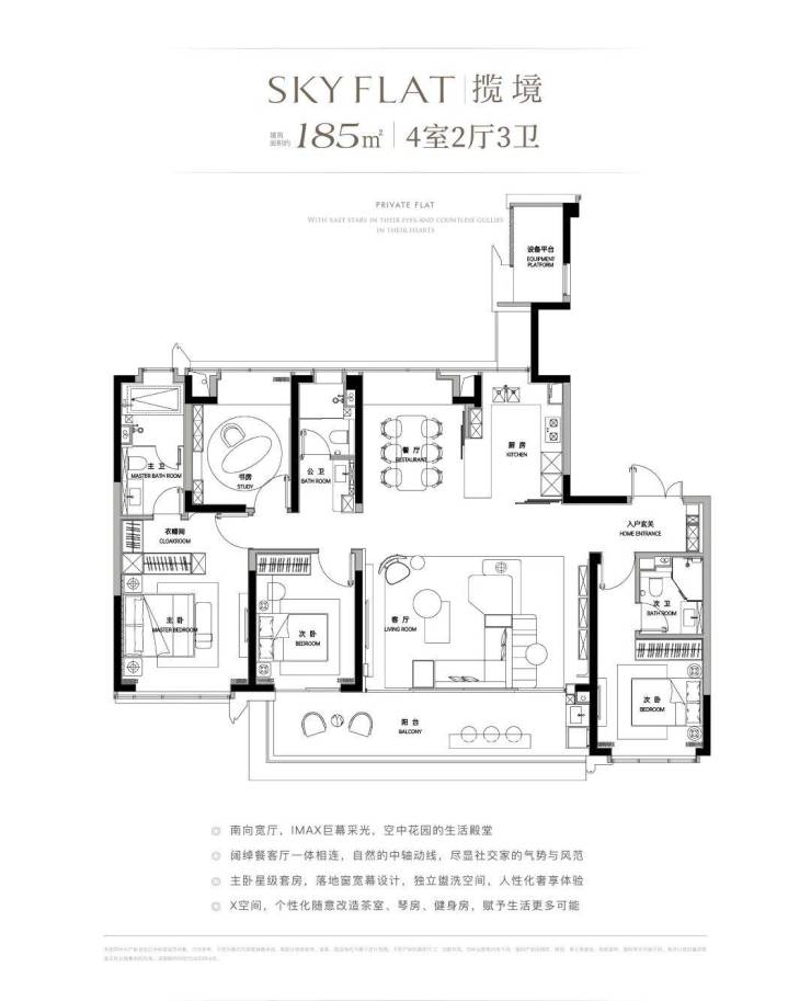 四室两厅四卫,露台20-30㎡