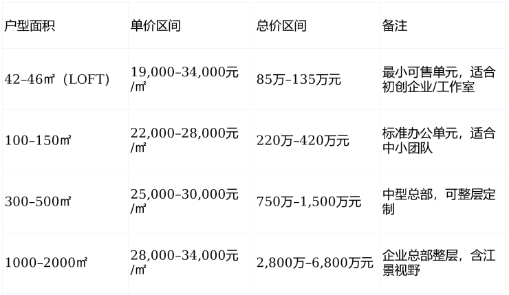 数据依据 :链家、安居客平台2025–2026年真实成交记录,最小户型成交价 85万元 为市场准入门槛, 无住宅类300㎡以上大平层产品 ,所有报价均为办公用途。