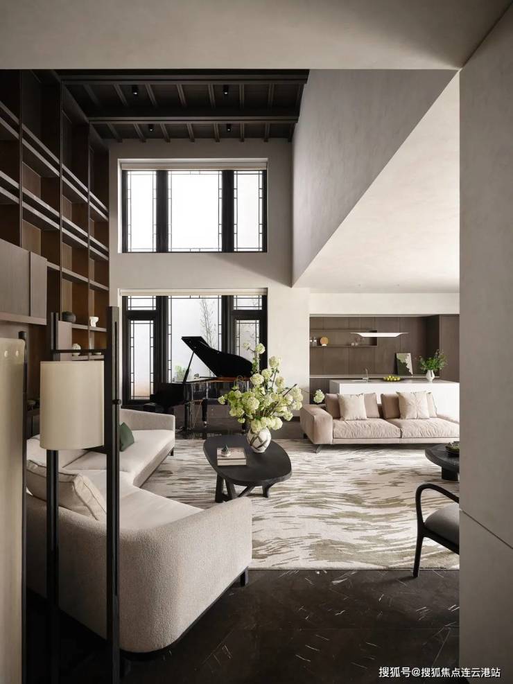 进退之间是人与景相逢将东方精神融入现代生活入户景观延续了山水园林的意趣,修竹如玉,流水汀步。随下沉庭院缓步慢移,即达地下二层的主客厅。
