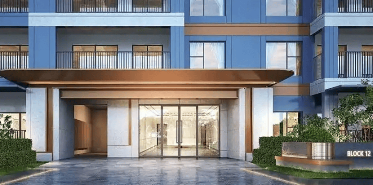 外立面采用 铝板+石材 ,入户大堂酒店式设计,提升归家仪式感