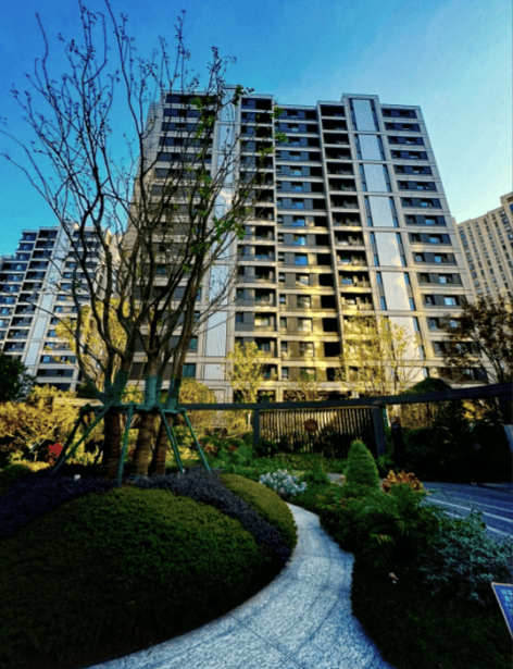 采用"新亚洲主义"风格,外立面为铝板+玻璃幕墙组合,楼间距最大达80米。园林设计由贝尔高林操刀,打造"五重立体景观",包含:
