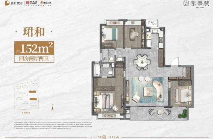 152㎡户型客厅面宽达5.75米;192㎡含双面奢石背景墙