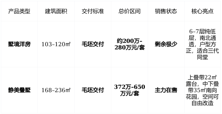 适合 厌倦高层密集、向往庭院生活、重视自然环境、不急于精装交付的改善型客群。