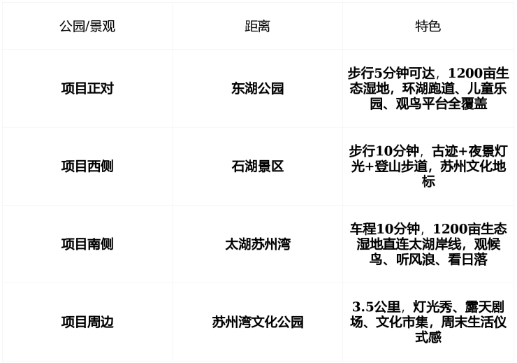 它不标榜“湖景稀缺”,但 东湖公园、石湖景区、太湖苏州湾 三重绿肺环伺;