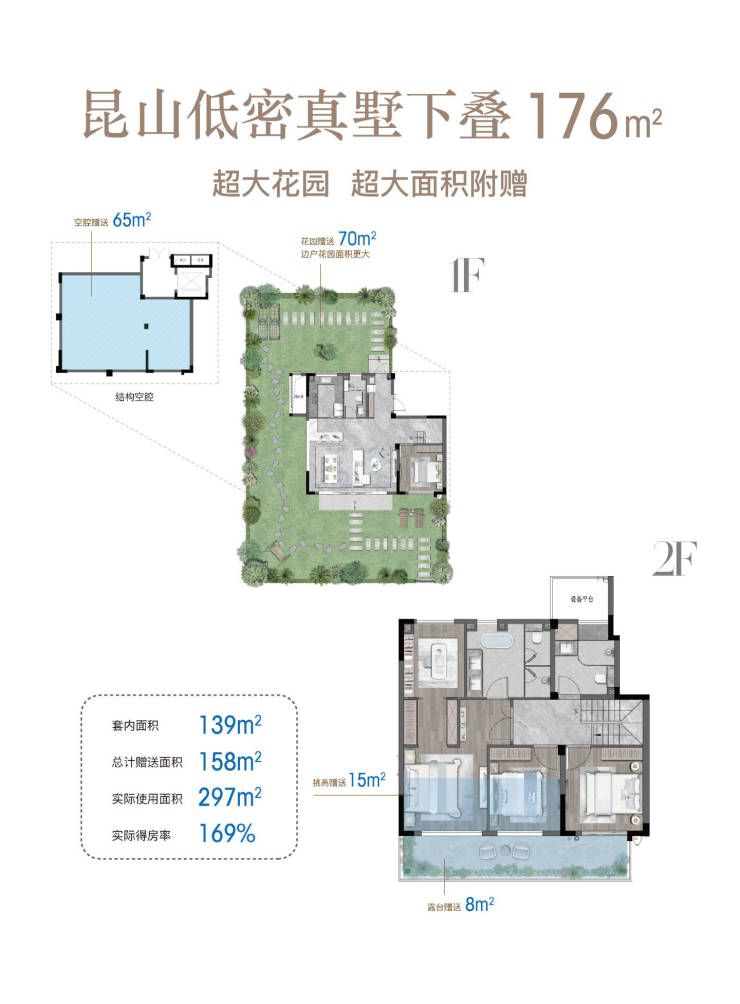 叠墅:约270–370万元/套(建面约141–176㎡);