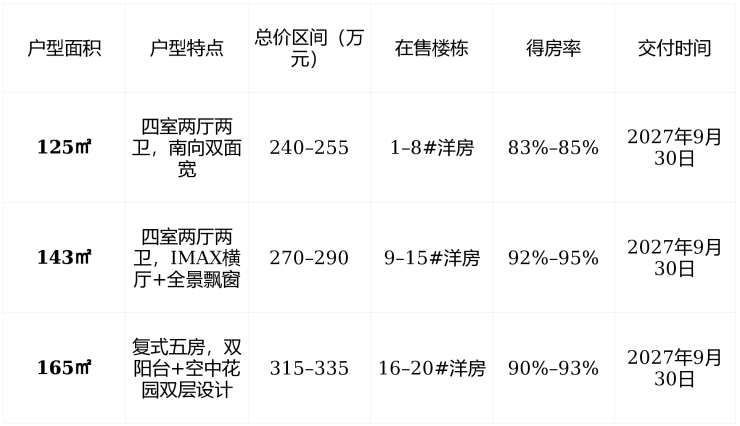 ✅ 温馨提示 : 143㎡户型 为爆款,南向采光超15米,建议优先锁定 9–12#楼 ,避开北向遮挡。