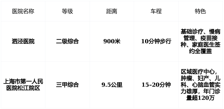 ✅ 健康保障 : 日常小病不出社区,急症15分钟直达三甲 , 无康复专科,但周边医疗资源可满足家庭基础需求 。