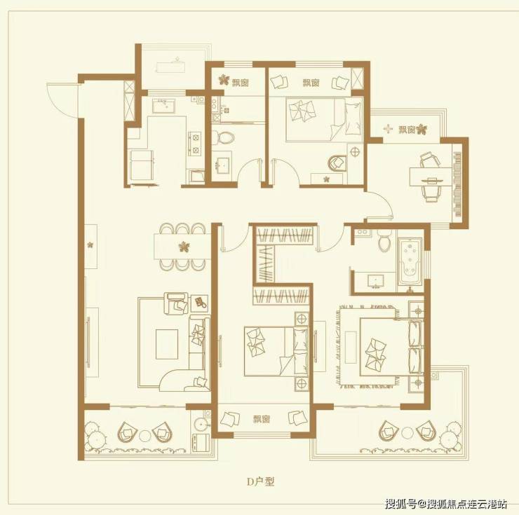 四房全明,主卧套房设计,带独立衣帽间与双台盆