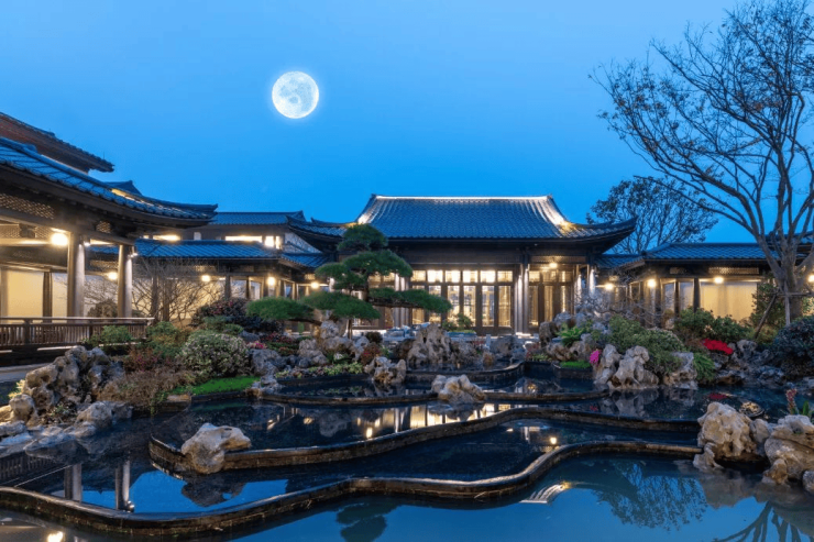 园林美学:以十字轴线布局打造“六大主题宋式庭院”,融合水景、林荫步道与观鸟平台,移步换景。