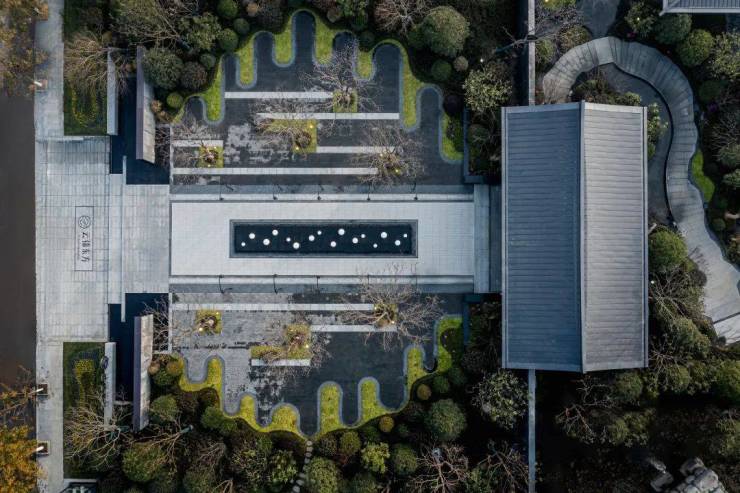 师法寄畅园打造近万方江南园林,采用三进制格局,融合唐风宋韵与现代设计