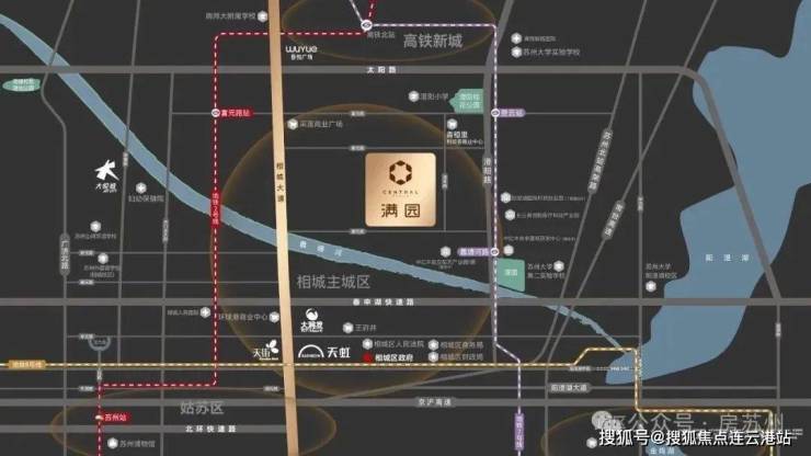 主干路网丨毗邻相城大道,直抵姑苏主城与相城CBD;无缝接驳中环北线,西接苏州科技城、东达园区湖东CBD;太阳路快速路西接苏州高新区、东联阳澄湖片区,打通“科创走廊-生态湖区”价值链;