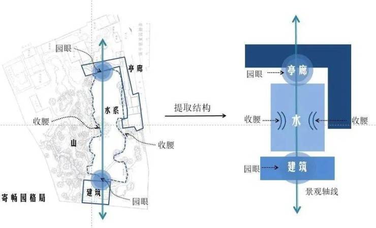 项目位于江苏无锡,两湖交汇,人杰地灵,自古名门望族林立,山水园林古韵悠长。项目通过分析古园——寄畅园的园林空间布局,提取古园林结构及元素,对空间重新解读定义。