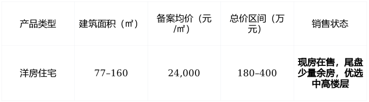 价格锚定清晰 :单价24,000元/㎡,较太仓主城区新房均价(21,000–26,000元/㎡)处于中高位,但 得房率+低密+现房 三重溢价支撑价值;