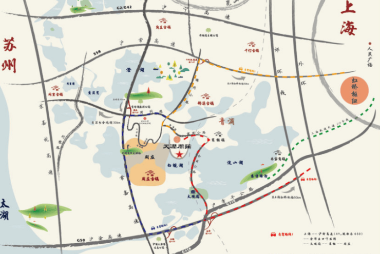 自驾出行:沪青平公路、商周公路等主干道快速接驳长三角路网,1.5小时覆盖上海、杭州核心区。