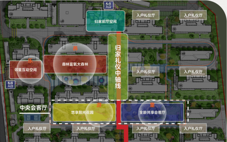 社区融合苏式美学风格,构筑"1轴9境3座人文会客厅"景观,打造轻奢居住体验感