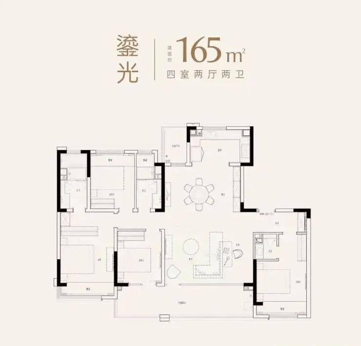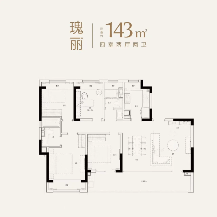 182㎡四房三卫户型,配备双主卧套房与IMAX级横厅,满足三代同堂需求。