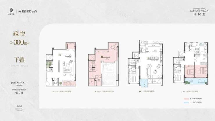 叠墅上叠235㎡、下叠300㎡,拓展后使用面积达360–430㎡,改造空间行业罕见。