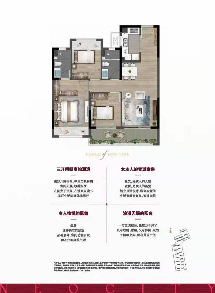 得房率82%,2梯4户设计,双开间朝南+宽景阳台