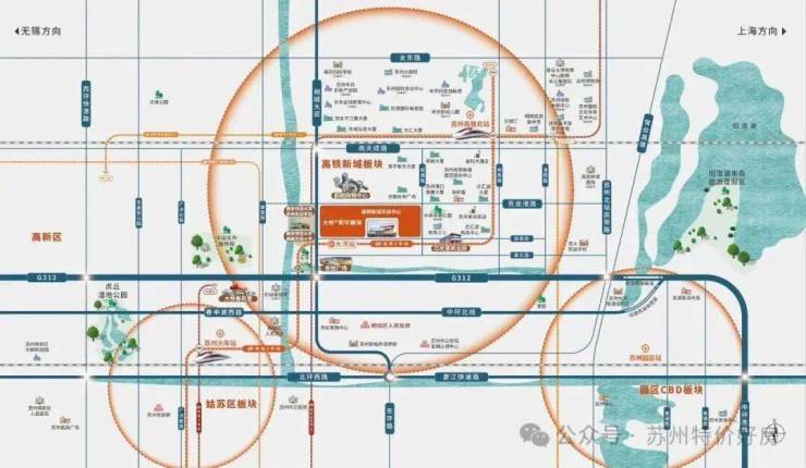 公路交通:紧邻中环北线、相城大道等城市主干道,自驾便捷,2.1公里直达苏州高铁北站