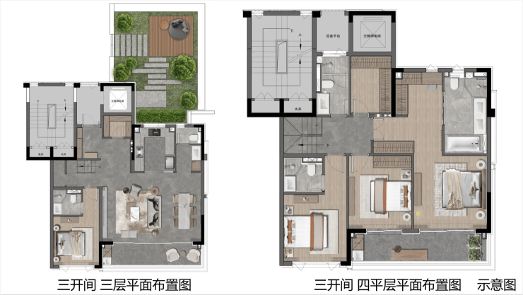 205㎡ 下叠 860 – 920 4.2万 – 4.5万 三开间布局,主卧朝南,庭院面积超100㎡,稀缺度高