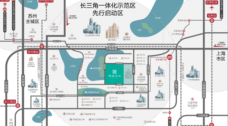 苏州南站(沪苏湖铁路+通苏嘉甬城际)距项目约7公里,通车后:
