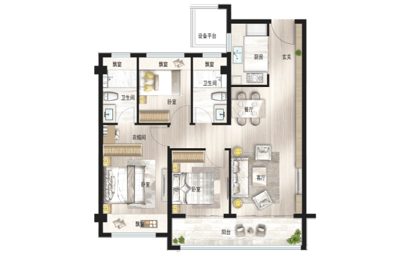 建面约118㎡户型 3室2厅2卫