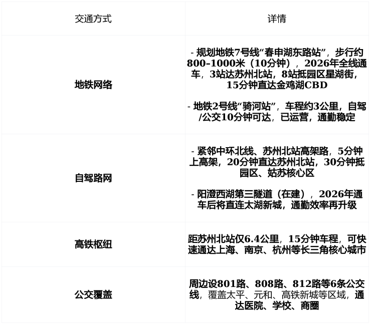 核心优势 : 中国铁建+中锐+信达联合开发 + 中铁建物业(2.44元/㎡·月) + 容积率仅1.2,绿化率37% + “宋锦缂丝”灵感2轴4巷10园苏式园林 + 119㎡洋房标配5.9米超宽阳台+全景飘窗 + 下叠带40–100㎡私家庭院+地下室 + 对口太平实验小学(直线1.4公里) + 步行10分钟达规划地铁7号线春申湖东路站(2026年通车) , 2026年苏州主城外“现房低密+学区明确+交通升级”最后优选 。