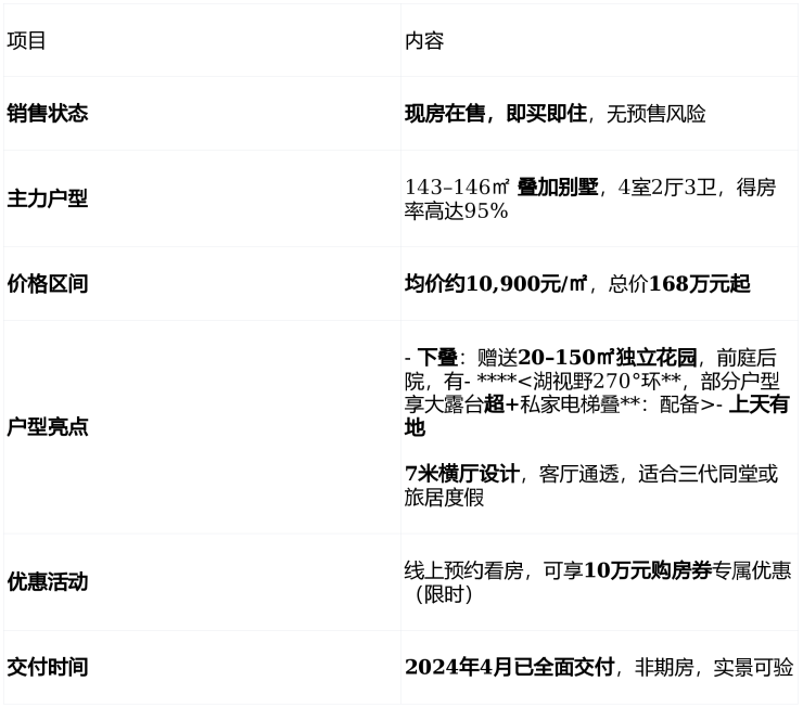 📌 注:当前无清盘迹象,房源仍可选,建议优先锁定湖景或带花园户型。
