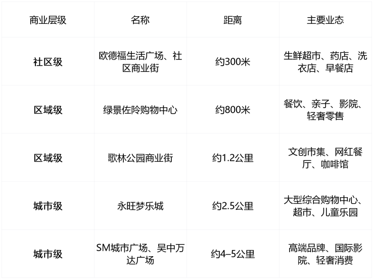 商业配套实现“500米日常消费—1.5公里品质生活—5公里城市级消费”无缝衔接。