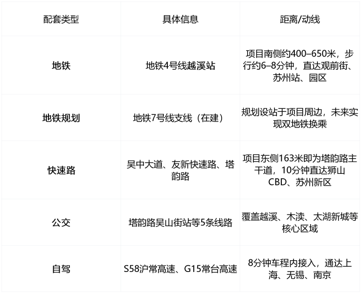 项目地处“越溪生活圈几何中心”,地铁+高架+公交三网融合,通勤效率居吴中区前列。