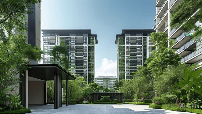 现代中式风格:采用粉墙黛瓦、平坡结合的现代中式建筑风格。