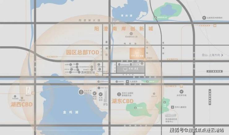 约3KM坐拥金鸡湖CBD精华配套,约500M星湖街,约1.5KM可达园区站“十字型”城际铁路枢纽、地铁及跨城轨交的TOD。