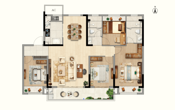 面积户型:125m²、139m²都是四房两卫户型。