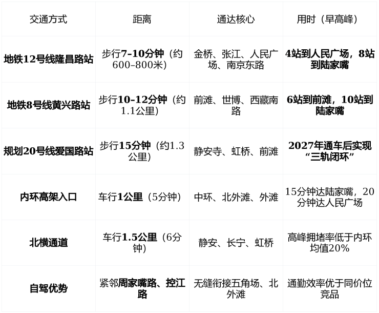 🚇 交通配套:双轨交汇+北横通道,15分钟通达陆家嘴