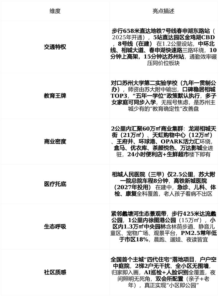 产权性质 :70年住宅产权, 开发商为相城经开国控(国企)× 旭辉建管(全国代建TOP2) ,政府“好房子”示范项目