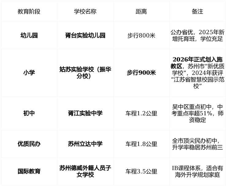 项目 2026年3月已由吴中区教育局正式公示划入姑苏实验学校(振华分校)施教区 , 划片范围明确,无争议、无调整预期 。