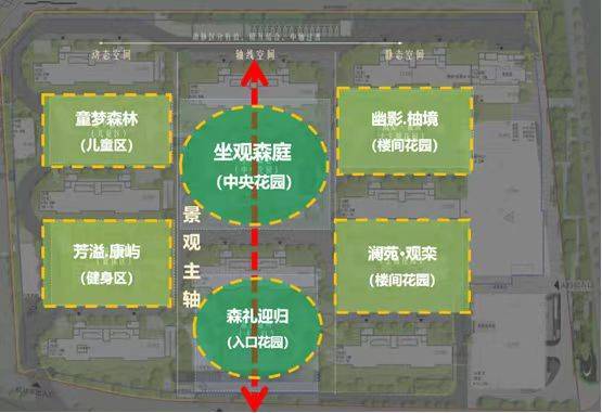 景观设计:"一轴·一心·四园"体系,含约2400㎡中央会客草坪、8大主题空间