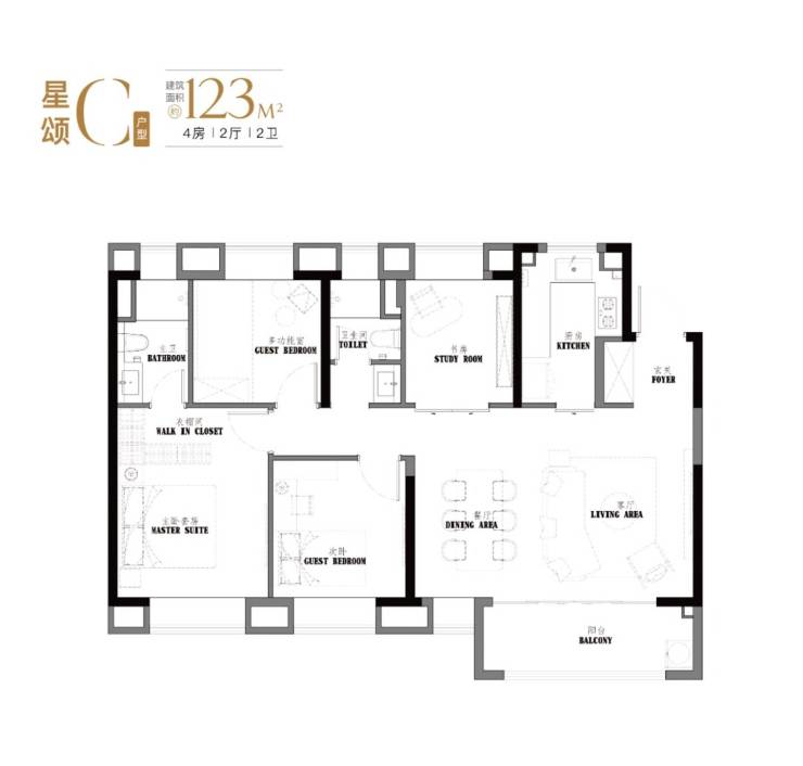 主力户型:103㎡三房(396套)、107㎡三房(34套)、123㎡四房(86套)、129㎡四房(34套)