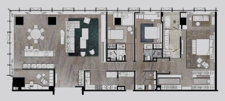 私密空间,匹配超大衣帽间与独立卫浴,豪奢主卧媲美华尔道夫总统套房。