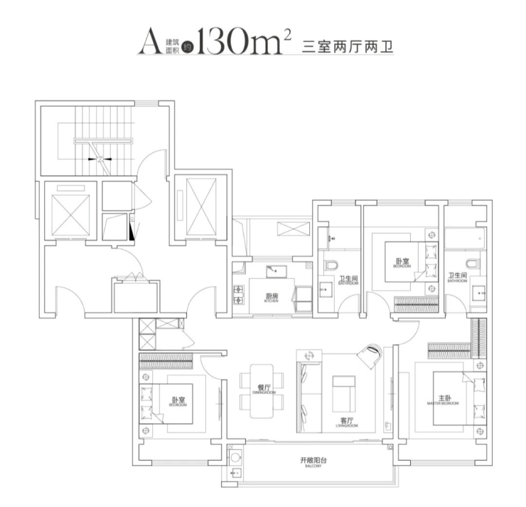 建面约130㎡三室两厅两卫
