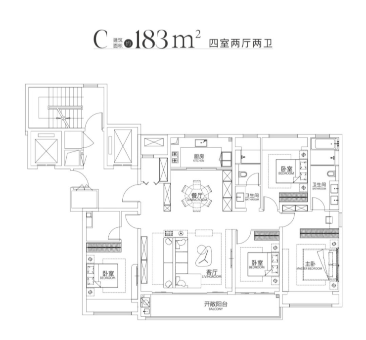 建面约183㎡四室两厅两卫