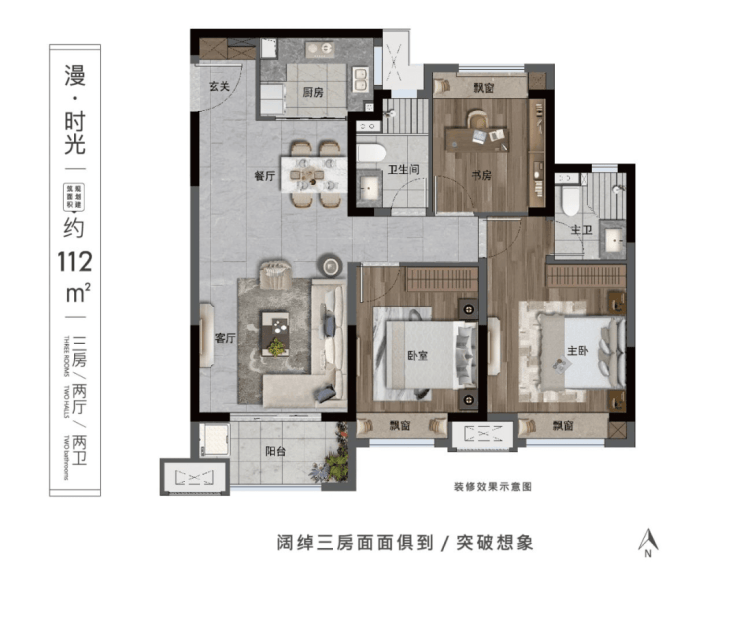户型:88-112㎡三居,均价8300-8600元/㎡,总价75-95万/套,得房率75%