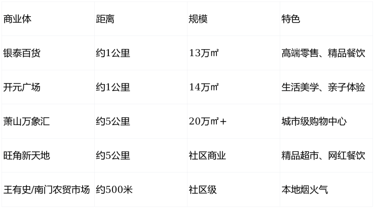 地铁:距地铁2号线曹家桥站约1公里(步行12分钟),直达钱江新城、武林广场;规划地铁15号线向旭路站(预计2028年开通)距项目约3公里,未来直连萧山国际机场、奥体中心、未来科技城。