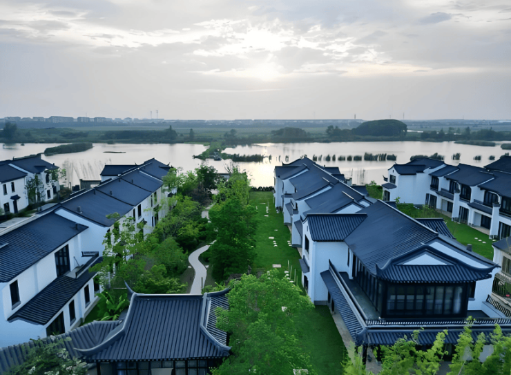 项目采用纯中式徽派建筑风格,粉墙黛瓦,飞檐戗角,由拥有2500余年造园历史的香山帮匠人打造园林景观,再现江南富贾的品质生活之居。这种低密规划在周庄区域极为罕见,为追求中式生活美学的高端客户提供了难得的居住选择。