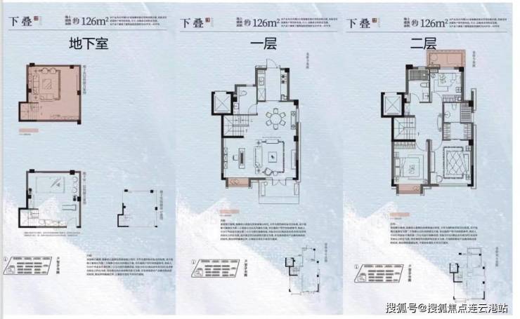 建面 126㎡:下叠,3 室 3 厅 3 卫,总价 270.0-290.0 万,分布于北区 22#、北区 25#、北区 27#、北区 29# 等,1 梯 1 户,层高 3.00 米,总楼层 4F,户型结构为复式。